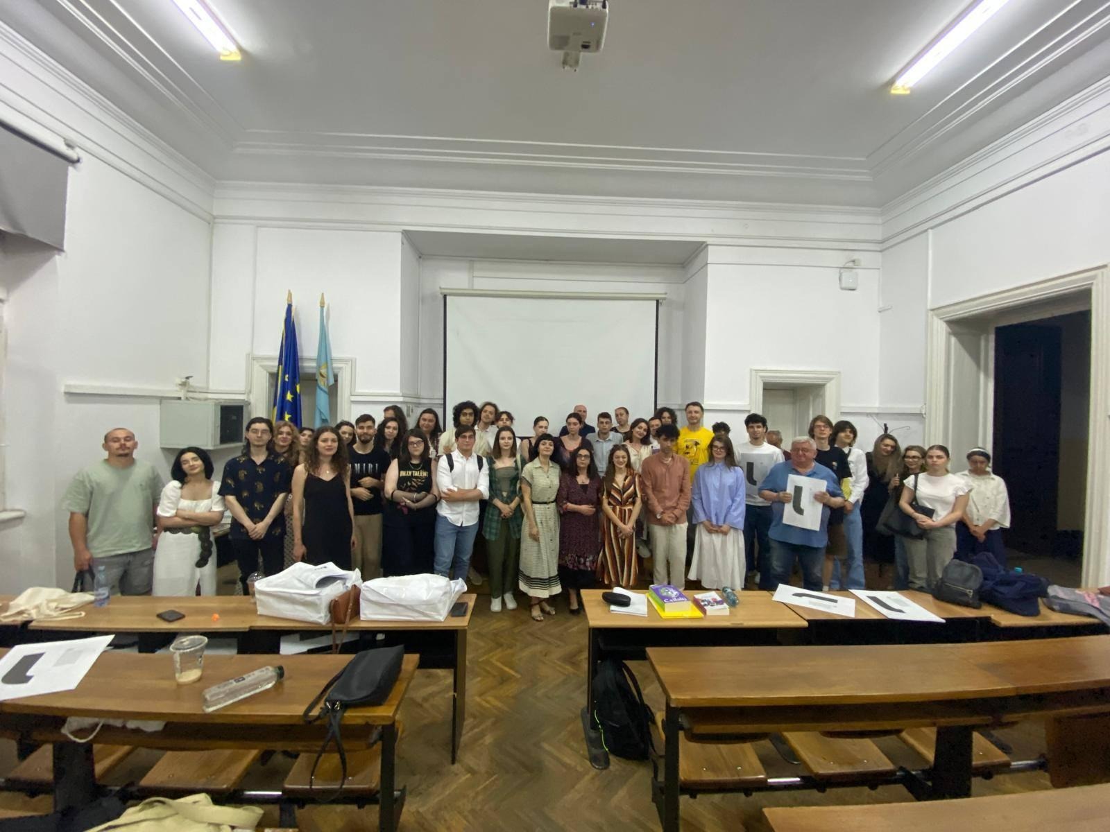 Deja era foarte târziu, așa că a trebuit să fim eficienți cu prezentarea și împărțirea ulterioară a noului număr din U. Noi am încercat, dar tot la miezu’ nopții am ieșit din facultate. După, un ropot de aplauze și pentru noi, dar și pentru că am supraviețuit cu toții căldurii și oboselii, fuguța la cutiile cu reviste. Ca după orice eveniment, nimeni nu pleacă direct acasă, ci vedeai în tot amfiteatrul fețe zâmbitoare care discută ținând în mână sau răsfoind noul număr. Cineva a și venit să-i semnăm revista. Seara s-a încheiat cu o mare, mare poză de grup. Cheeese!